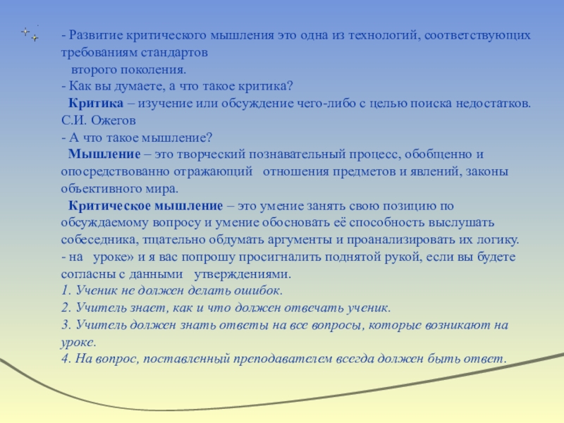 Использование приёмов развития критического мышления на уроках