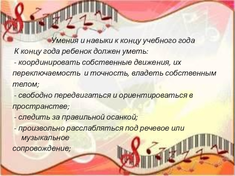 - выразительно и ритмично двигаться в соответствии с разнообразным характером музыки, музыкальными образами;