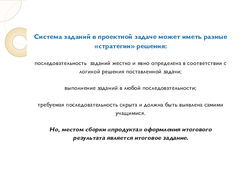 Наличие квазижизненной ситуации, сочетающей множество отдельных заданий, побуждающих на основе известных способов действий конструировать собственный новый способ действия.