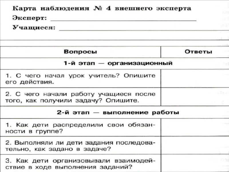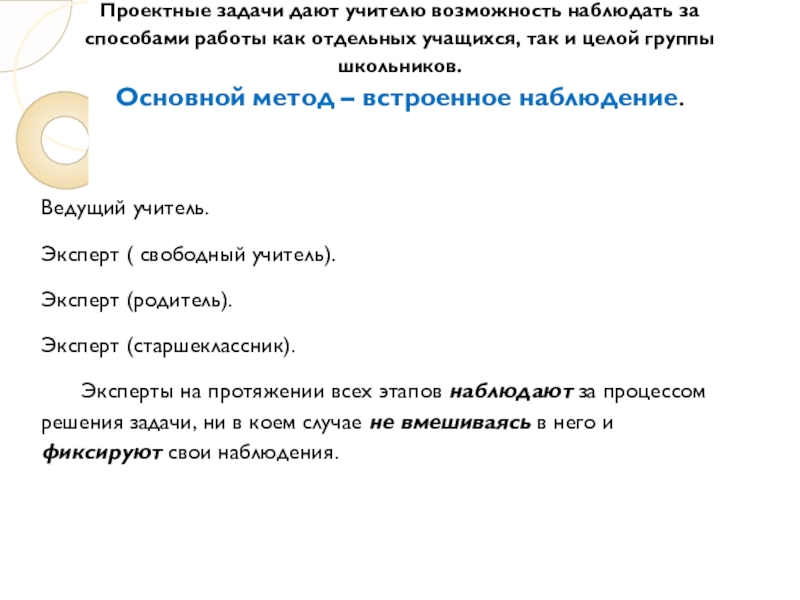 Эксперты на протяжении всех этапов наблюдают за процессом решения задачи, ни в коем случае не вмешиваясь в него и фиксируют свои наблюдения.