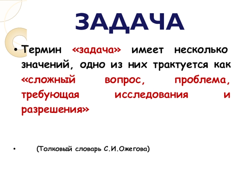 «ЗАДАЧА – СЛОЖНЫЙ ВОПРОС,