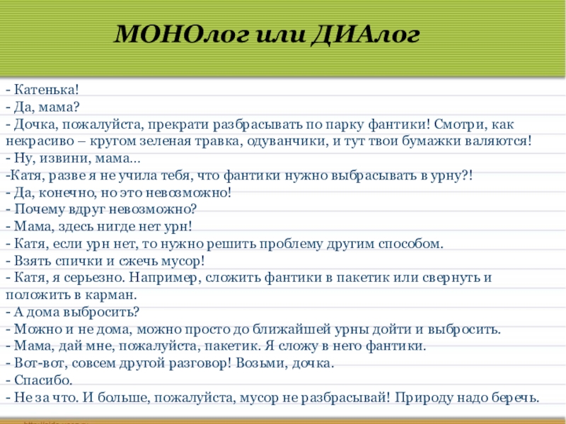 Смотри, как некрасиво – кругом зеленая травка, одуванчики, и тут твои бумажки валяются!