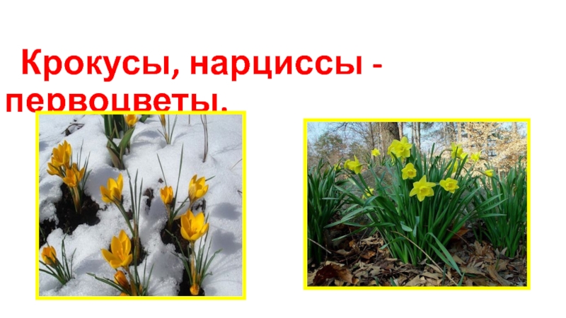 Слайд 8 Крокусы, нарциссы - первоцветы.