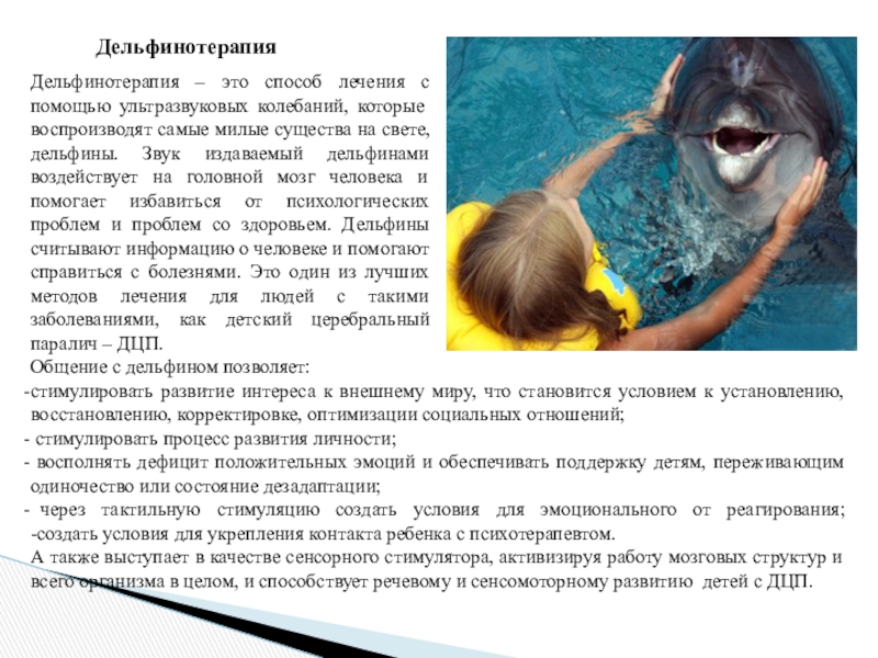 А также выступает в качестве сенсорного стимулятора, активизируя работу мозговых структур и всего организма в целом, и способствует речевому и сенсомоторному развитию детей с ДЦП.