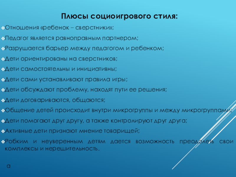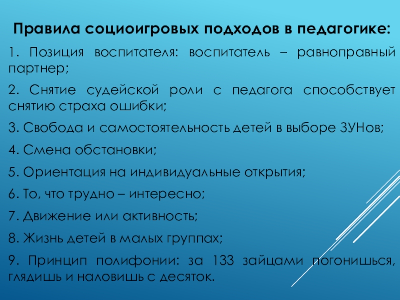 Ориентация на индивидуальные открытия. Дети становятся соучастниками игры.