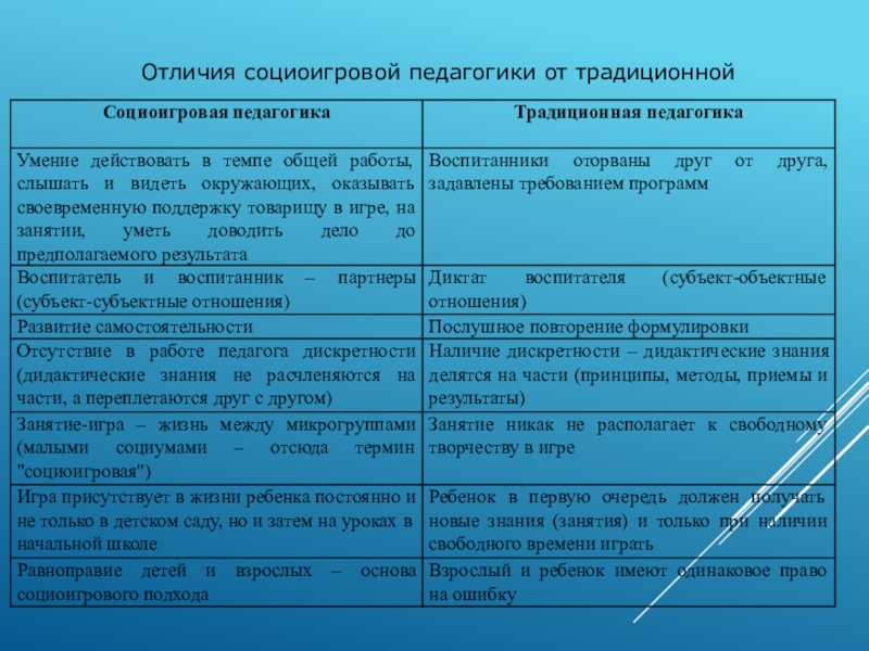 Слайд 8Отличия социоигровой педагогики от традиционной