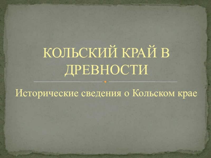КОЛЬСКИЙ КРАЙ В ДРЕВНОСТИ