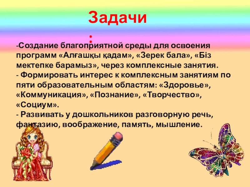 -Создание благоприятной среды для освоения программ «Алғашқы қадам», «Зерек бала»,