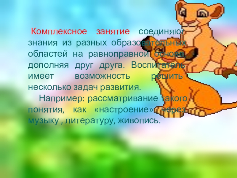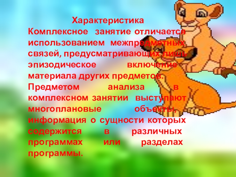 Предметом анализа в комплексном занятии выступают многоплановые объекты, информация о сущности которых содержится в различных программах или разделах программы.