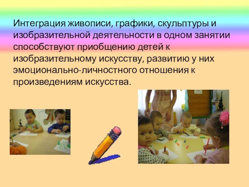 Интеграция живописи, графики, скульптуры и изобразительной деятельности в одном занятии способствуют