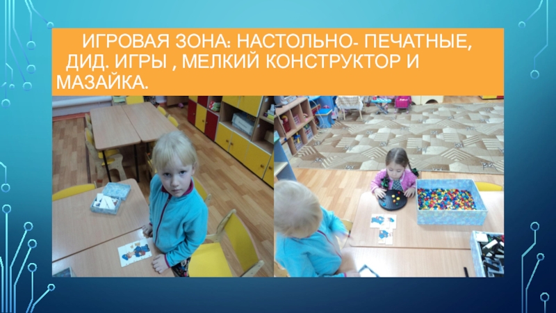 Слайд 3 Игровая зона: настольно- печатные, дид. игры , мелкий