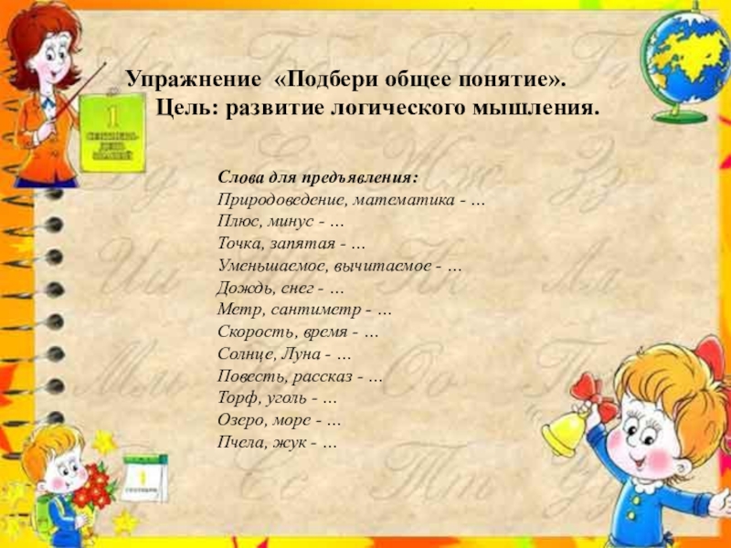Слова для предъявления:
