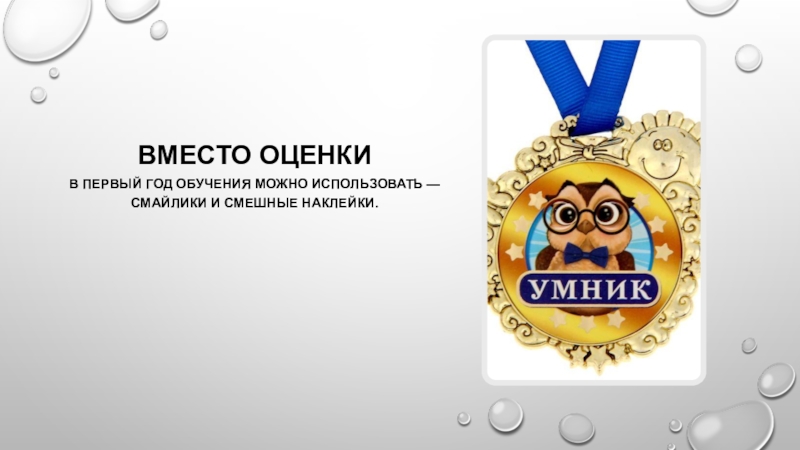 Вместо оценкив первый год обучения можно использовать — смайлики и смешные наклейки.