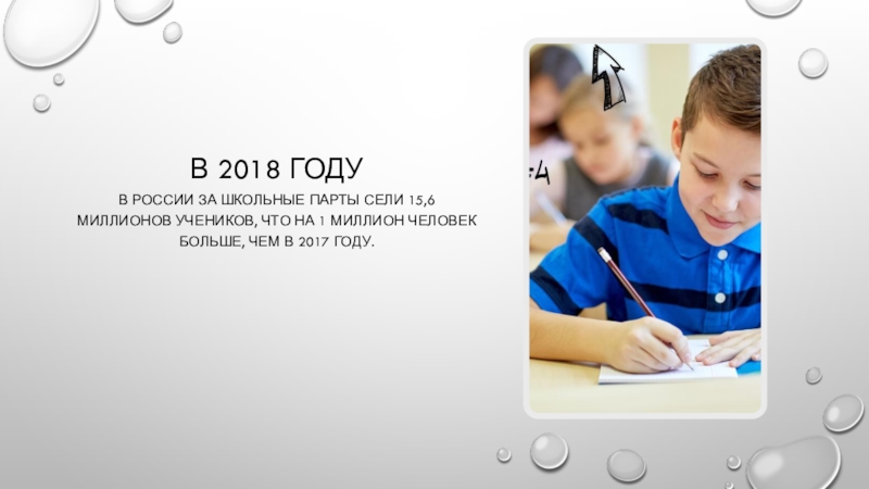 В 2018 годув России за школьные парты сели 15,6 миллионов учеников, что на 1 миллион человек больше, чем в 2017 году.