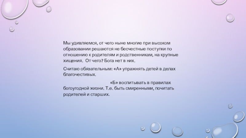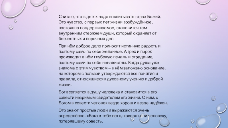 Слайд 7Считаю, что в детях надо воспитывать страх Божий. Это чувство, с