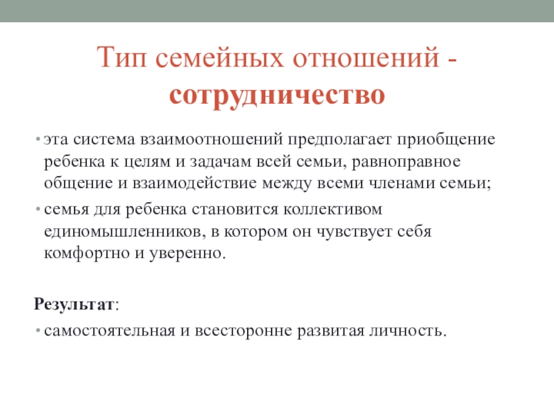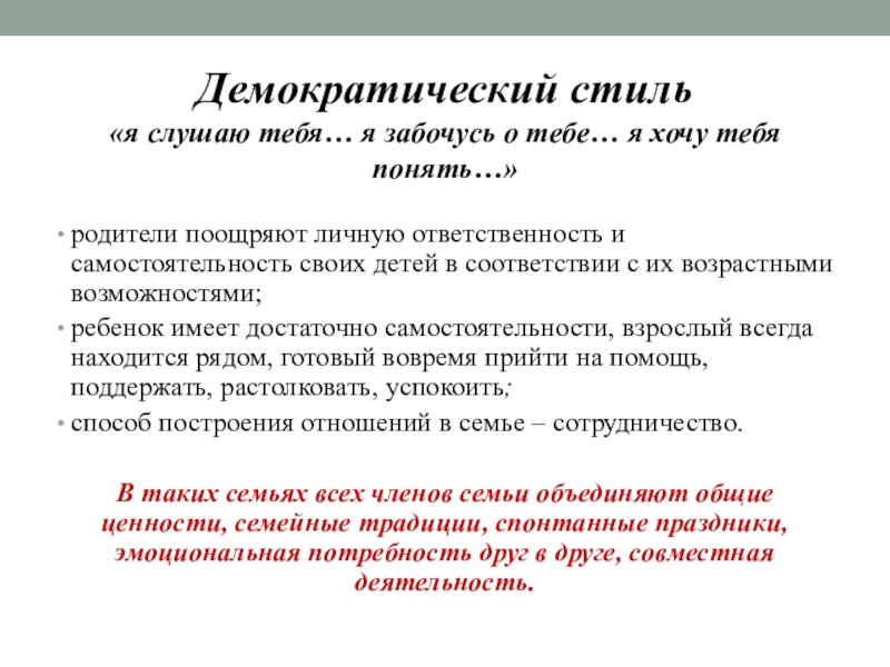 В таких семьях всех членов семьи объединяют общие ценности, семейные традиции, спонтанные праздники, эмоциональная потребность друг в друге, совместная деятельность.