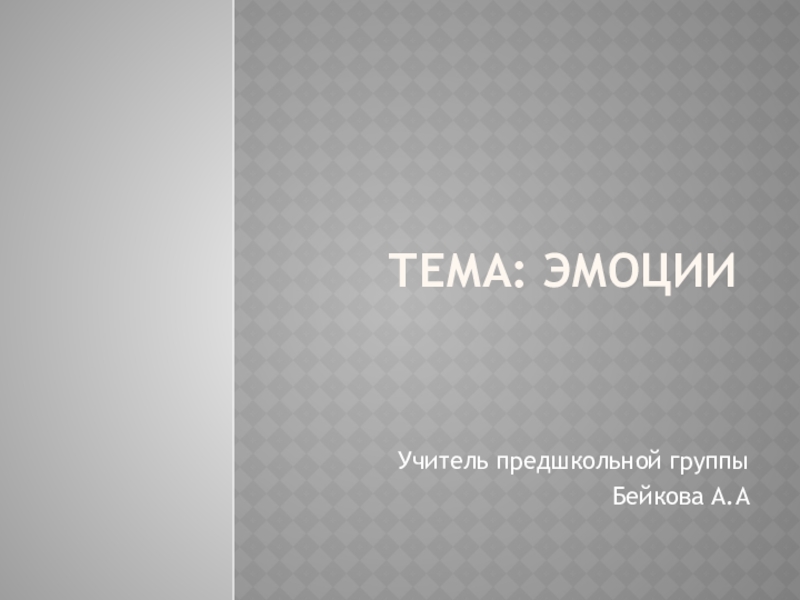 Тема: Эмоции Учитель предшкольной группыБейкова А.А