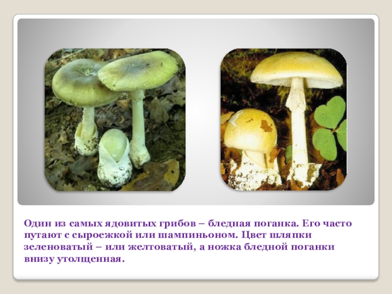 Слайд 9Один из самых ядовитых грибов – бледная поганка. Его часто путают