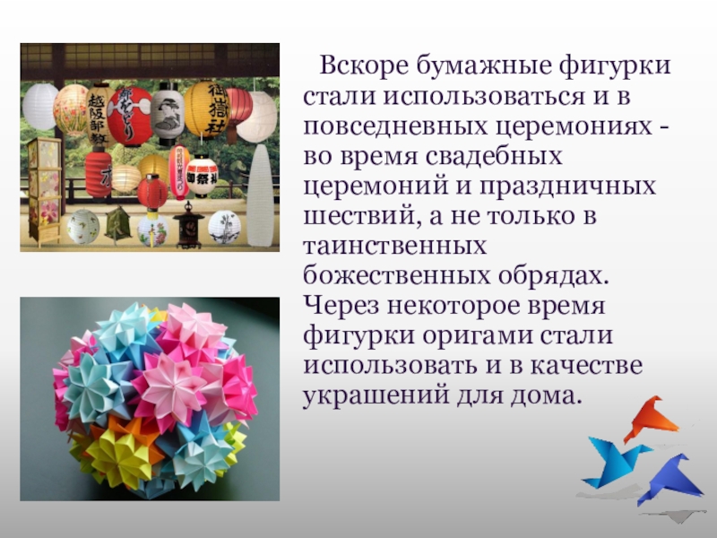 Слайд 6 Вскоре бумажные фигурки стали использоваться и в повседневных церемониях -