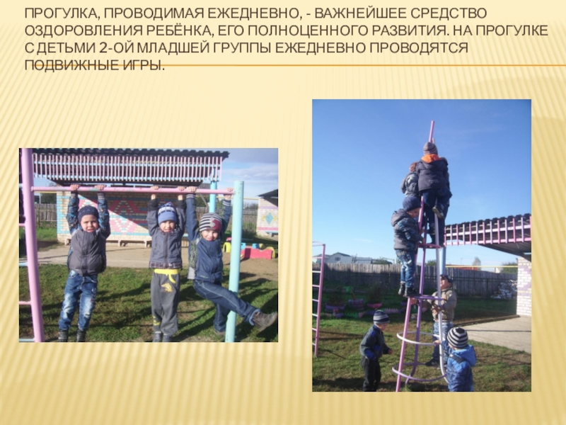Слайд 5Прогулка, проводимая ежедневно, - важнейшее средство оздоровления ребёнка, его полноценного развития.