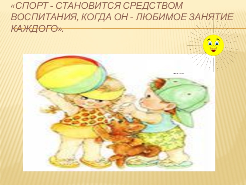 Слайд 13«Спорт - становится средством воспитания, когда он - любимое занятие каждого».