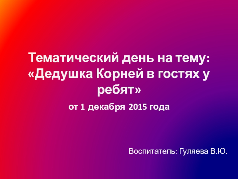 Воспитатель: Гуляева В.Ю.