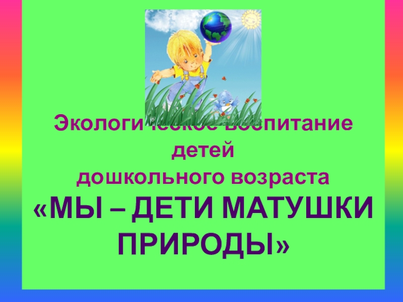 Слайд 4 Экологическое воспитание детей дошкольного возраста «Мы – дети матушки природы»
