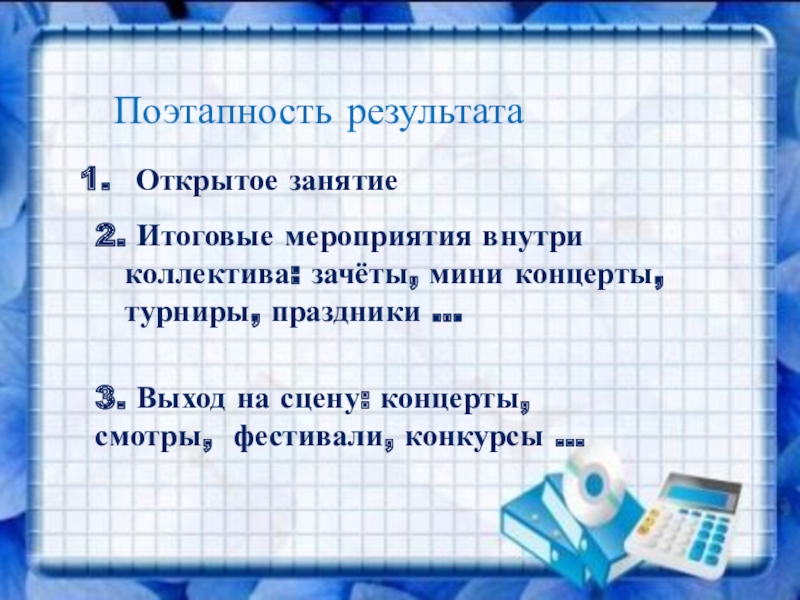 3. Выход на сцену: концерты, смотры, фестивали, конкурсы …