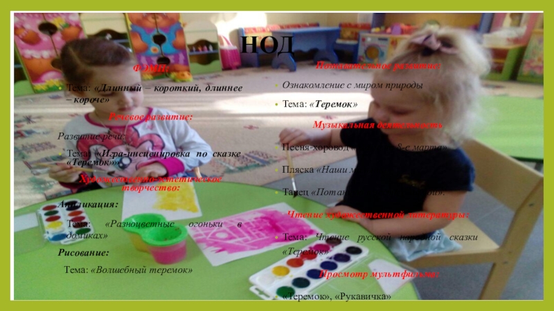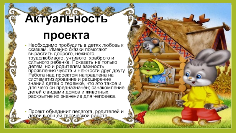 Цель: формирование понимания того, что маме нужно помогать, любить и уважать; расширение представления детей о видах домов и животных; развитие сенсорных навыков, познавательного интереса, речи; активизация актерской деятельности.