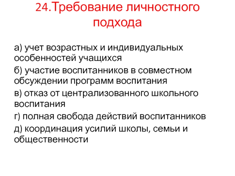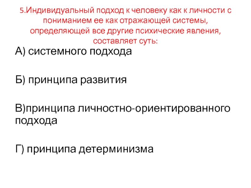 В)принципа личностно-ориентированного подхода