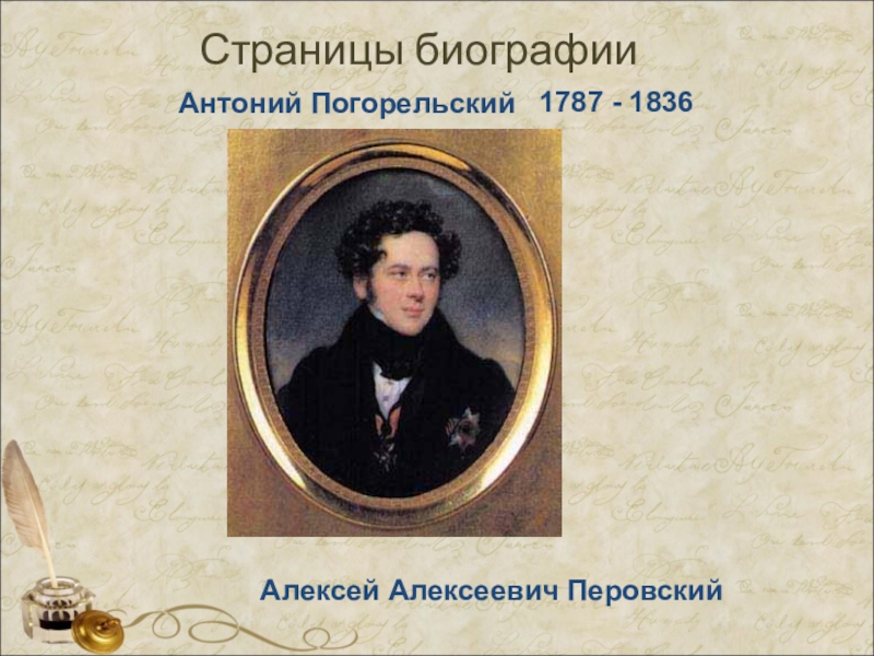 Страницы биографии1787 - 1836Антоний Погорельский Алексей Алексеевич Перовский