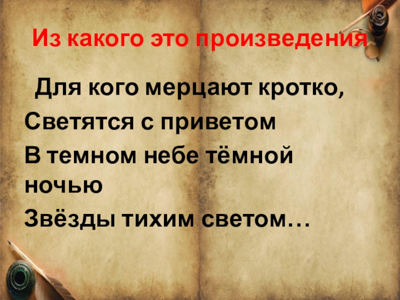 Из какого это произведения Для кого мерцают кротко,Светятся с приветомВ темном небе тёмной ночьюЗвёзды тихим светом…