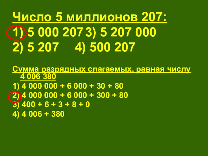 Сумма разрядных слагаемых, равная числу 4 006 380