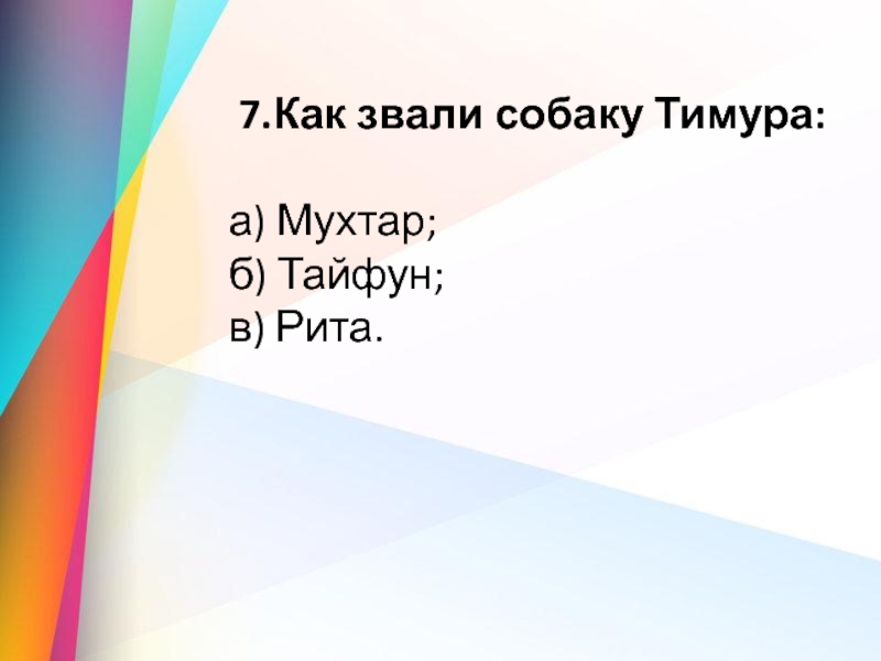 Слайд 8 7.Как звали собаку Тимура: