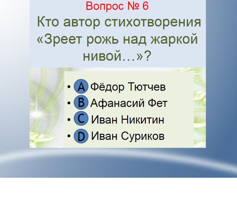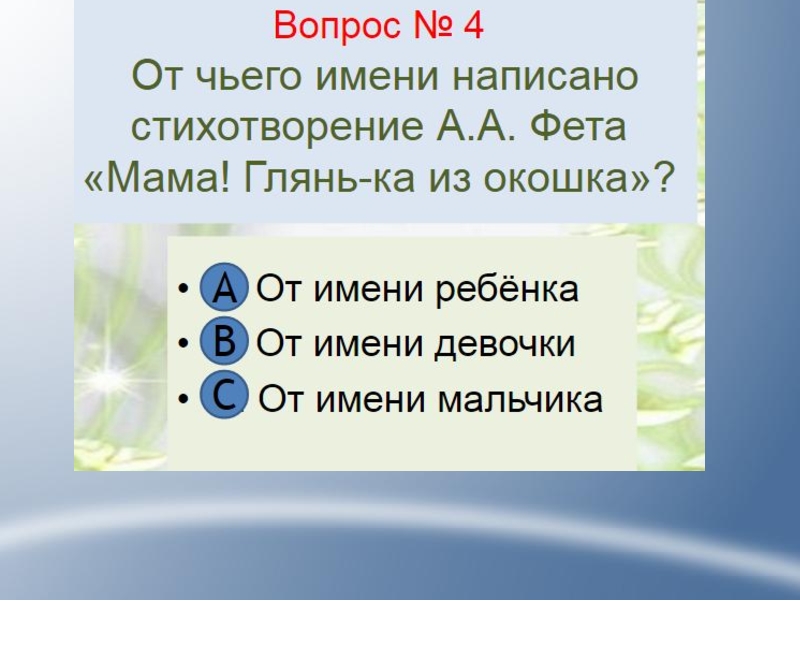 Презентация, доклад Тест Поэтическая тетрадь 1(литературное чтение)