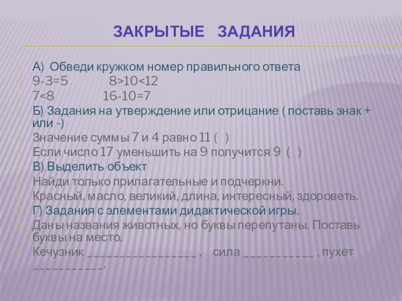 Слайд 12Закрытые задания