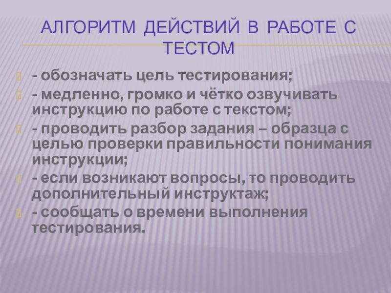 Слайд 3Алгоритм действий в работе с тестом