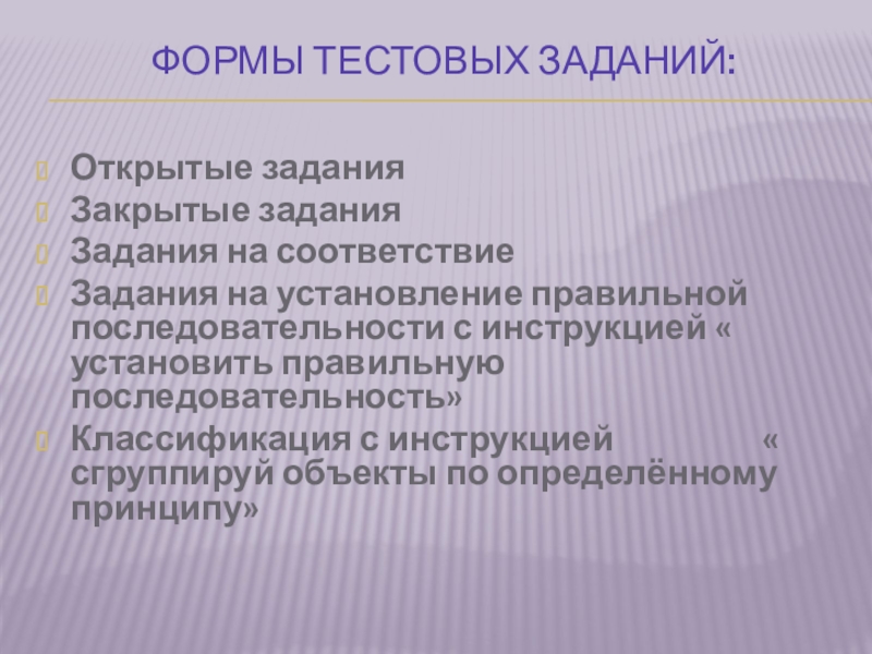 Слайд 10формы тестовых заданий: