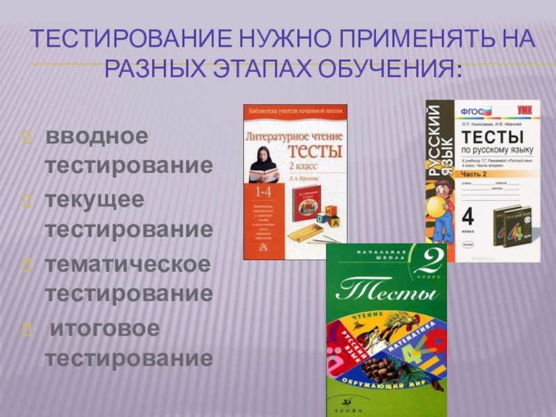 Слайд 6тестирование нужно применять на разных этапах обучения: