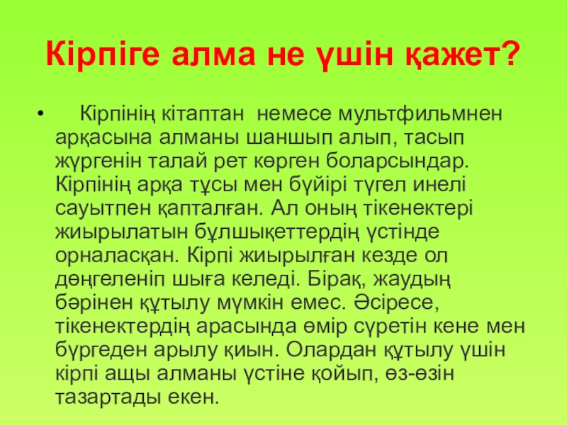 Кірпінің кітаптан немесе мультфильмнен арқасына