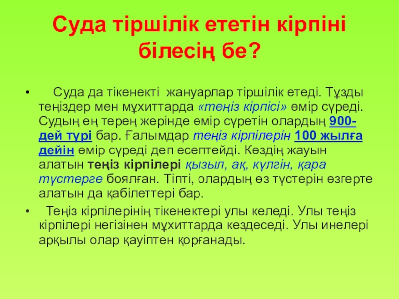 Слайд 21Суда тіршілік ететін кірпіні білесің бе?