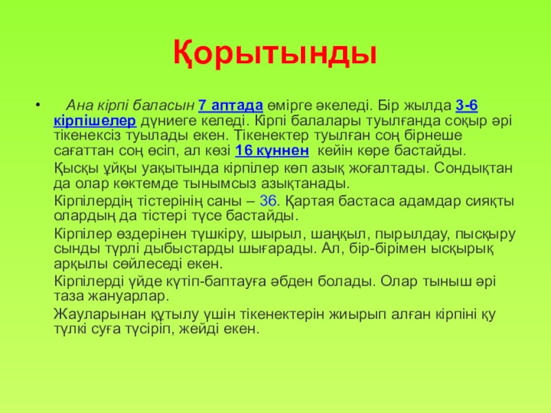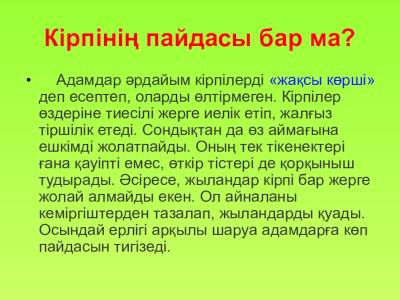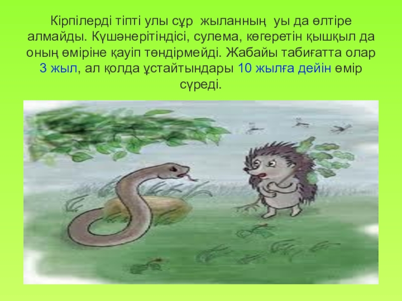 Слайд 14Кірпілерді тіпті улы сұр жыланның уы да өлтіре алмайды. Күшәнерітіндісі, сулема,