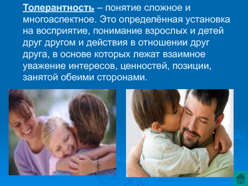 Слайд 1ТОЛЕРАНТНОЕ ВЗАИМОДЕЙСТВИЕ МЕЖДУ ДЕТЬМИ И РОДИТЕЛЯМИ