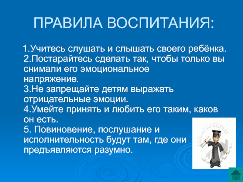 Слайд 10ПРАВИЛА ВОСПИТАНИЯ: