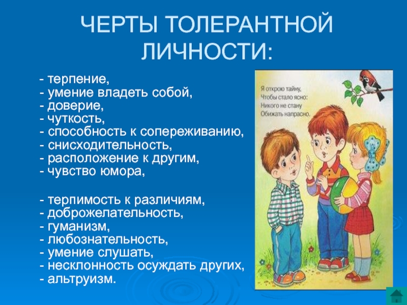 Слайд 11ЧЕРТЫ ТОЛЕРАНТНОЙ ЛИЧНОСТИ: