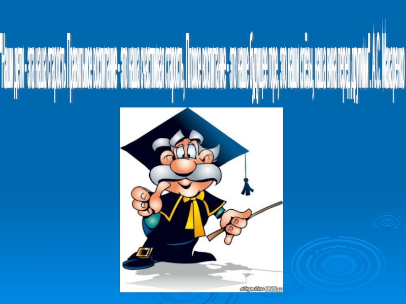 "Наши дети - эта наша старость Правильное воспитание - это наша счастливая старость, Плохое воспитание - это наше будущее горе, это наши слёзы, наша вина перед другими". А.С. Макаренко