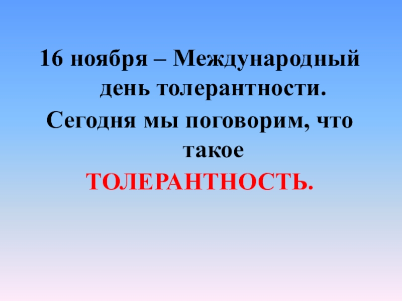 16 ноября – Международный день толерантности. Сегодня мы поговорим, что такое ТОЛЕРАНТНОСТЬ.
