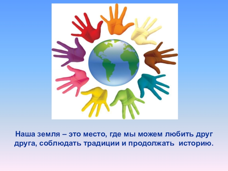 Слайд 12Наша земля – это место, где мы можем любить друг друга,