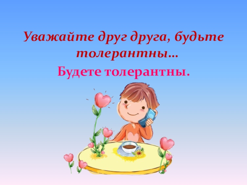 Уважайте друг друга, будьте толерантны…Будете толерантны.