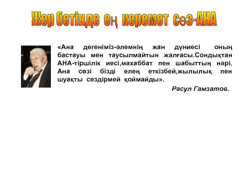 Слайд 2“Ана дегеніміз -әлемнің жан-дүниесі,